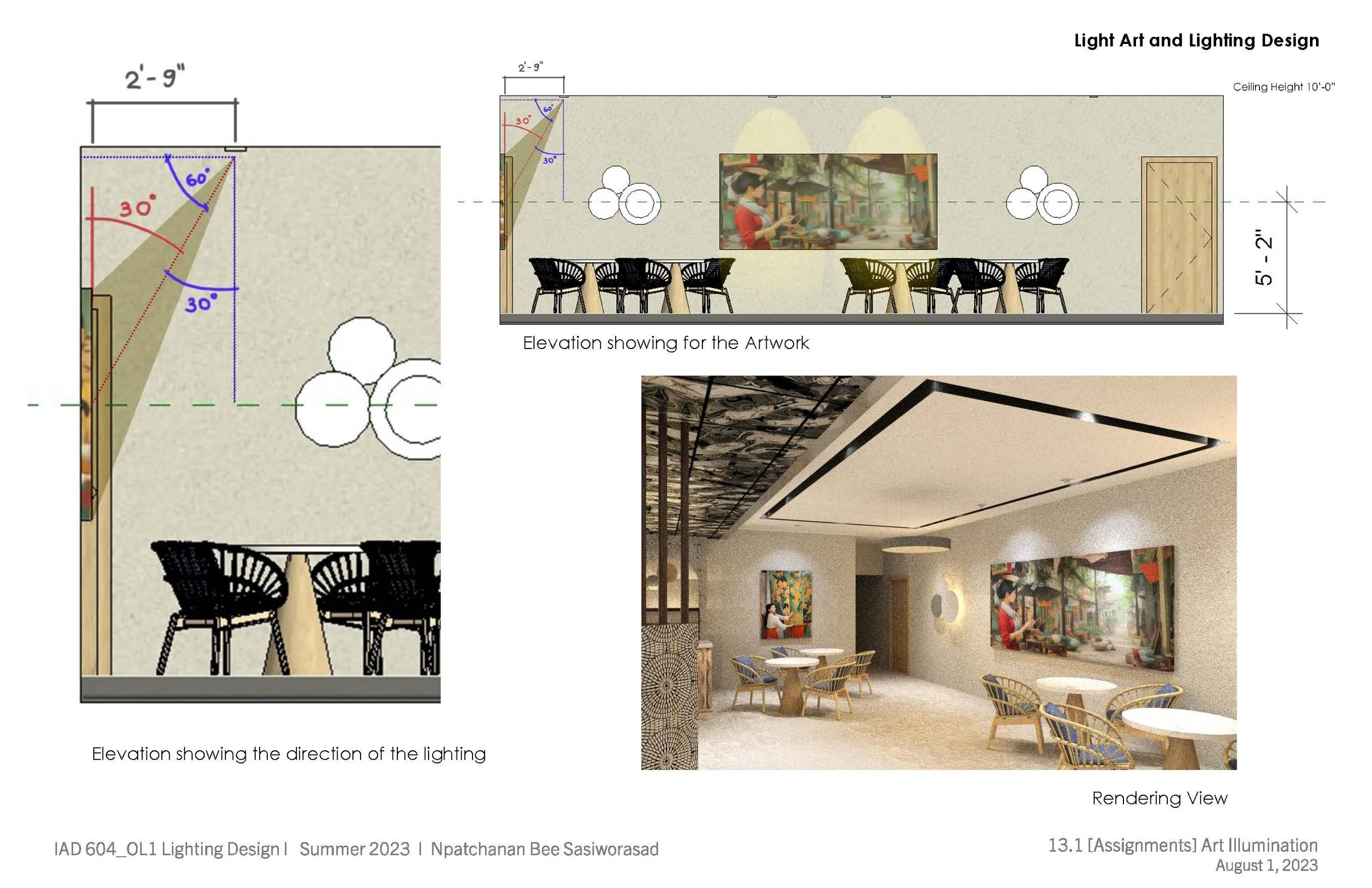 This project challenges students to create a lighting design tailored specifically for a Vietnamese restaurant. The conceptual overview of "Vietnamese Hoi An Lantern Fusion Glow" aims to vividly portray the ancient tradition of floating lanterns, which serves as a powerful reminder of Vietnamese culture.